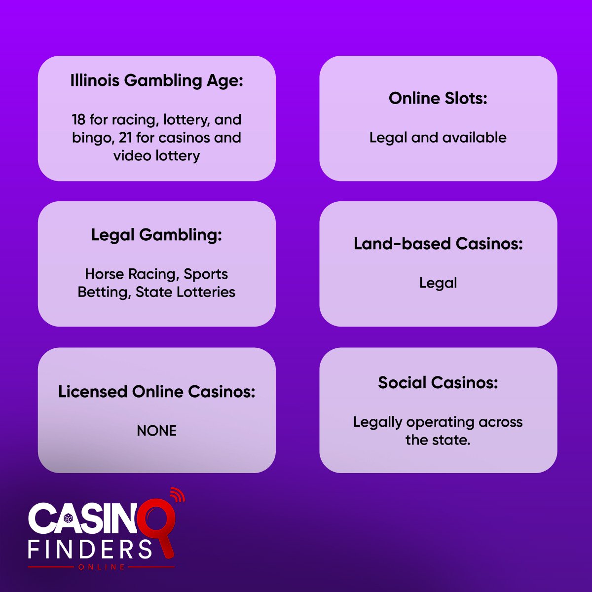 The Illinois Gaming Board (IGB) is responsible for gaming and gambling regulations across the state and oversees all forms of gambling in the Prairie State. According to the IGB Gambling Laws and Standards, the following Casino Games are approved and considered legal across the entire state of Illinois.